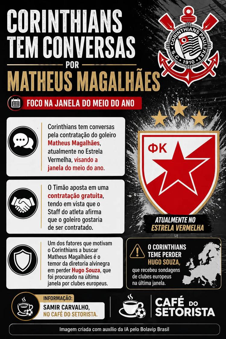 Segundo Samir Carvalho, o Timão aposta em uma chegada sem custos, aproveitando da vontade do jogador em atuar pelo clube O Corinthians atualmente conta com Hugo Souza como seu goleiro, tendo total confiança, até porque o desempenho desde que chegou ao clube fez com que se tornasse um dos nomes mais