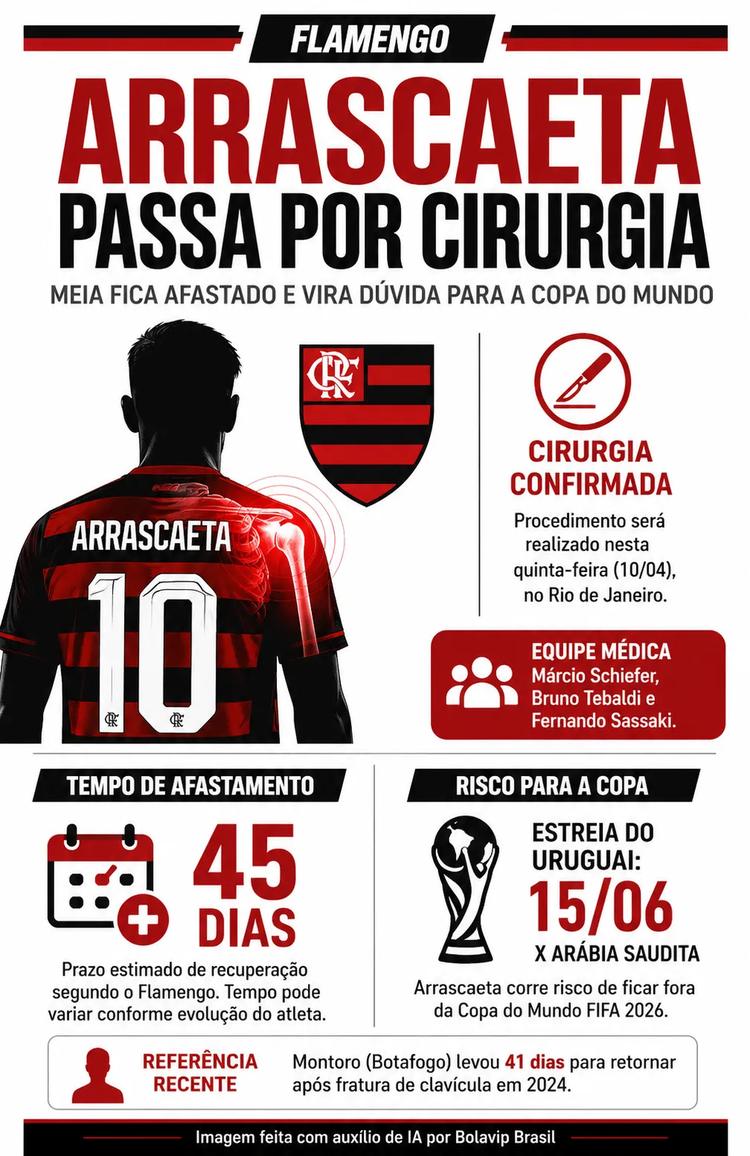 Com isso, Arrascaeta sai de cena por algumas semanas. O Clube de Regatas do Flamengo fala em 45 dias como prazo de afastamento estimado, no entanto, tal período não é uma certeza definitiva, já que a recuperação depende de cada caso fisiológico e pode se estender ou até encurtar.
