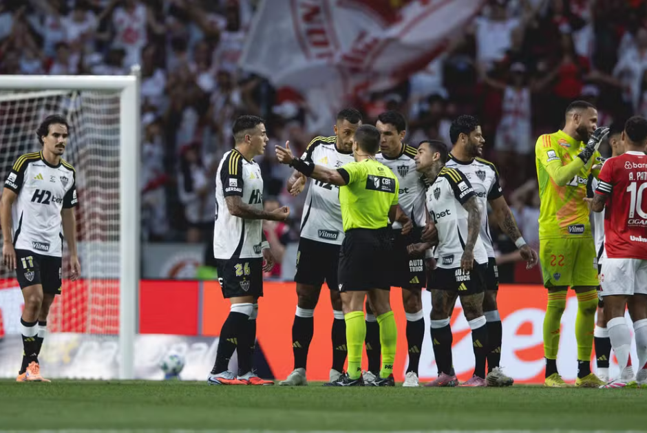 O Atlético-MG expressou forte insatisfação com a condução da arbitragem no empate sem gols diante do Internacional, neste domingo, no Beira-Rio. A partida, decisiva na briga por posição, teve lances polêmicos no primeiro tempo, incluindo uma expulsão confirmada com auxílio do VAR, um pênalti cancelado e outra expulsão revertida após revisão. Diante do que considera um desempenho “inadmissível”, o clube pediu mudanças urgentes na arbitragem do futebol brasileiro.