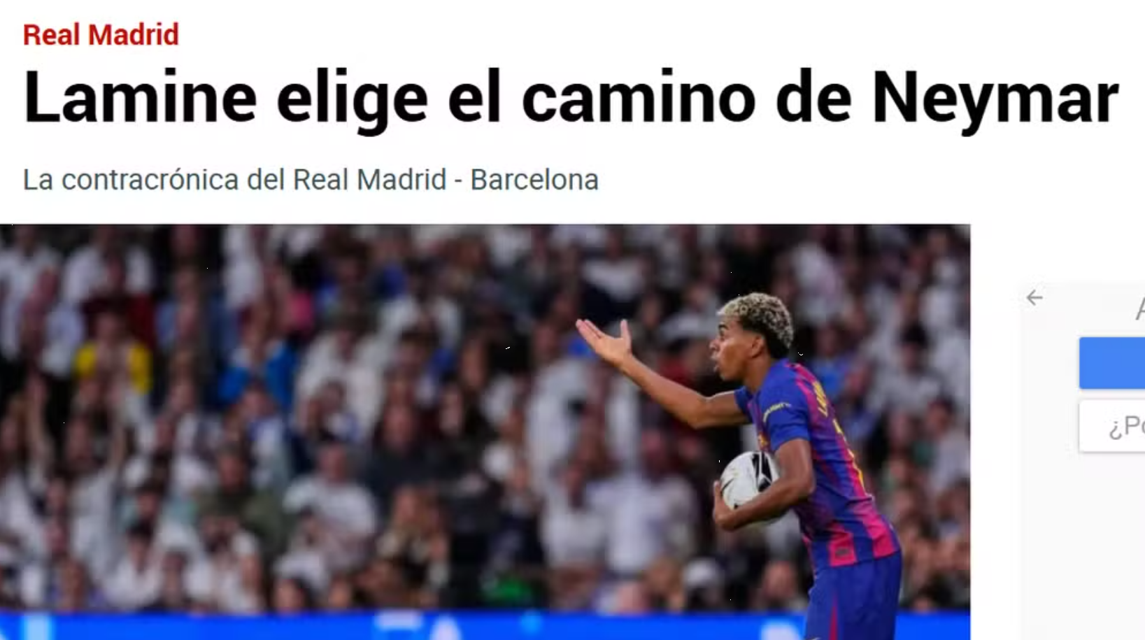 Em artigo assinado pelo jornalista Juan Ignacio García-Ochoa, o veículo afirmou que Yamal “escolheu o caminho de Neymar”, criticando a postura do camisa 10 nas entrevistas e a falta de protagonismo durante a partida.